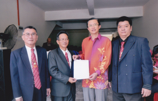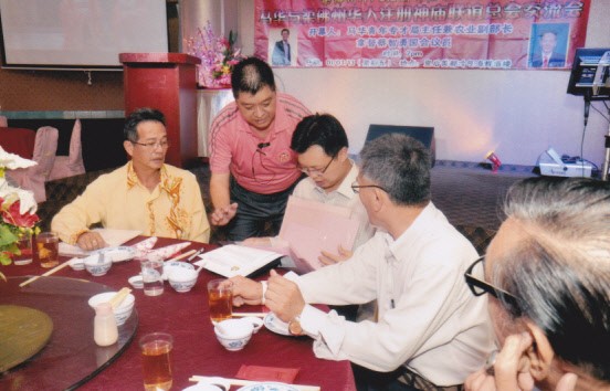 | 本会会长拿督张锦昌率领神庙代表程交签名名单,支持中华公会号召挺中庸G25签名运动 |